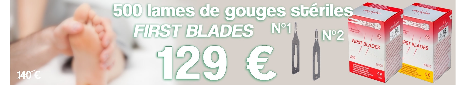Promo ! -11,00 € Lame de gouge stérile First Blades - Boite de 500 - N°1 / N°2 Lame de gouge stérile En acier inoxydable Haute qualité du tranchant Stérilisation par rayons gamma Emballage individuel avec ouverture... 129,00 € 140,00 € Ajouter à ma liste Ajouter à comparer Aperçu rapide Ajouter au panier