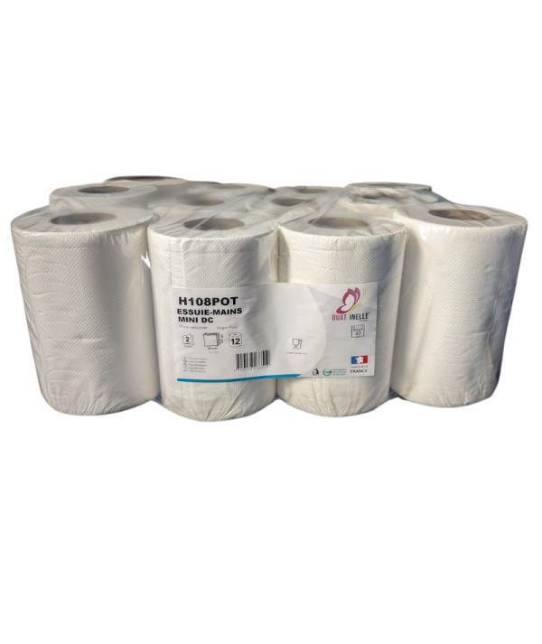 Bobine essuie mains gaufrée Ouatinelle - Dévidage central - Petit modèle - Ballot de 12 rouleaux