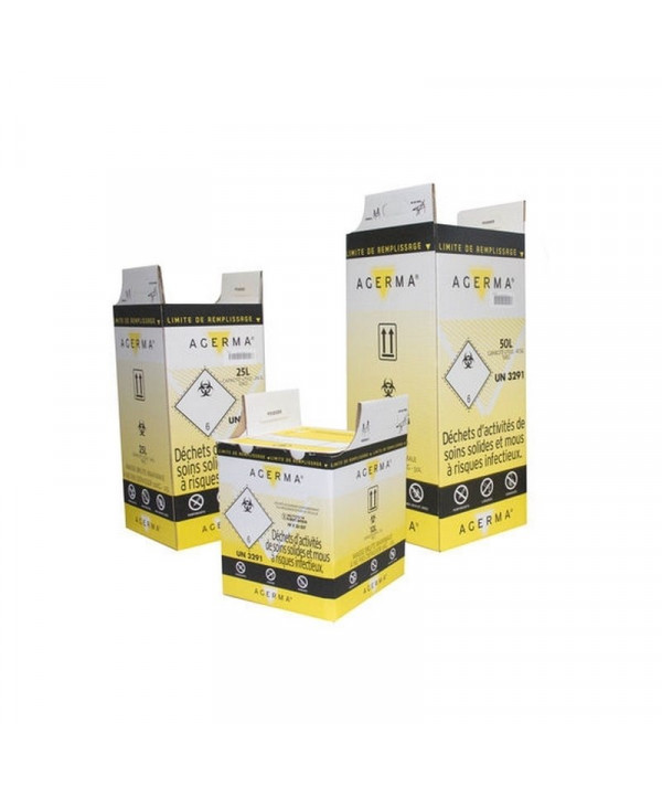 Conteneur en carton - Pour déchets risques infectieux - Lot de 10 cartons - 25 ou 50 litres