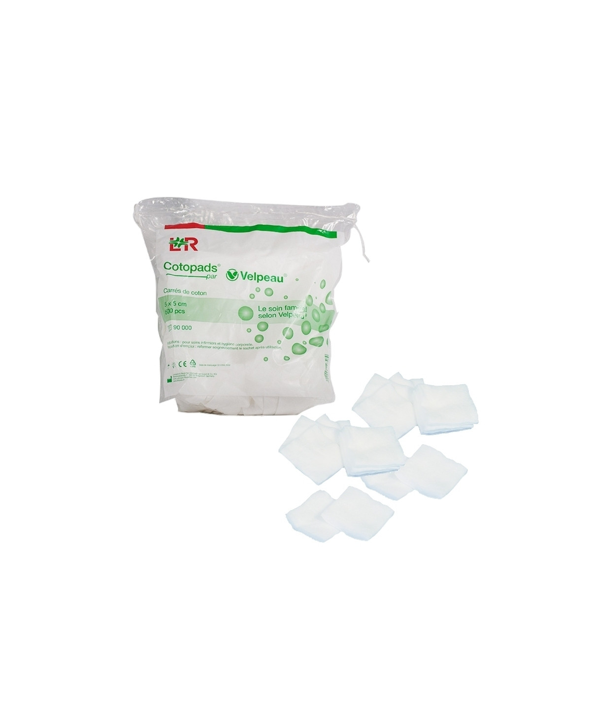Coton carré Cotopads Velpeau - 5 x 5 cm - Sachet de 500