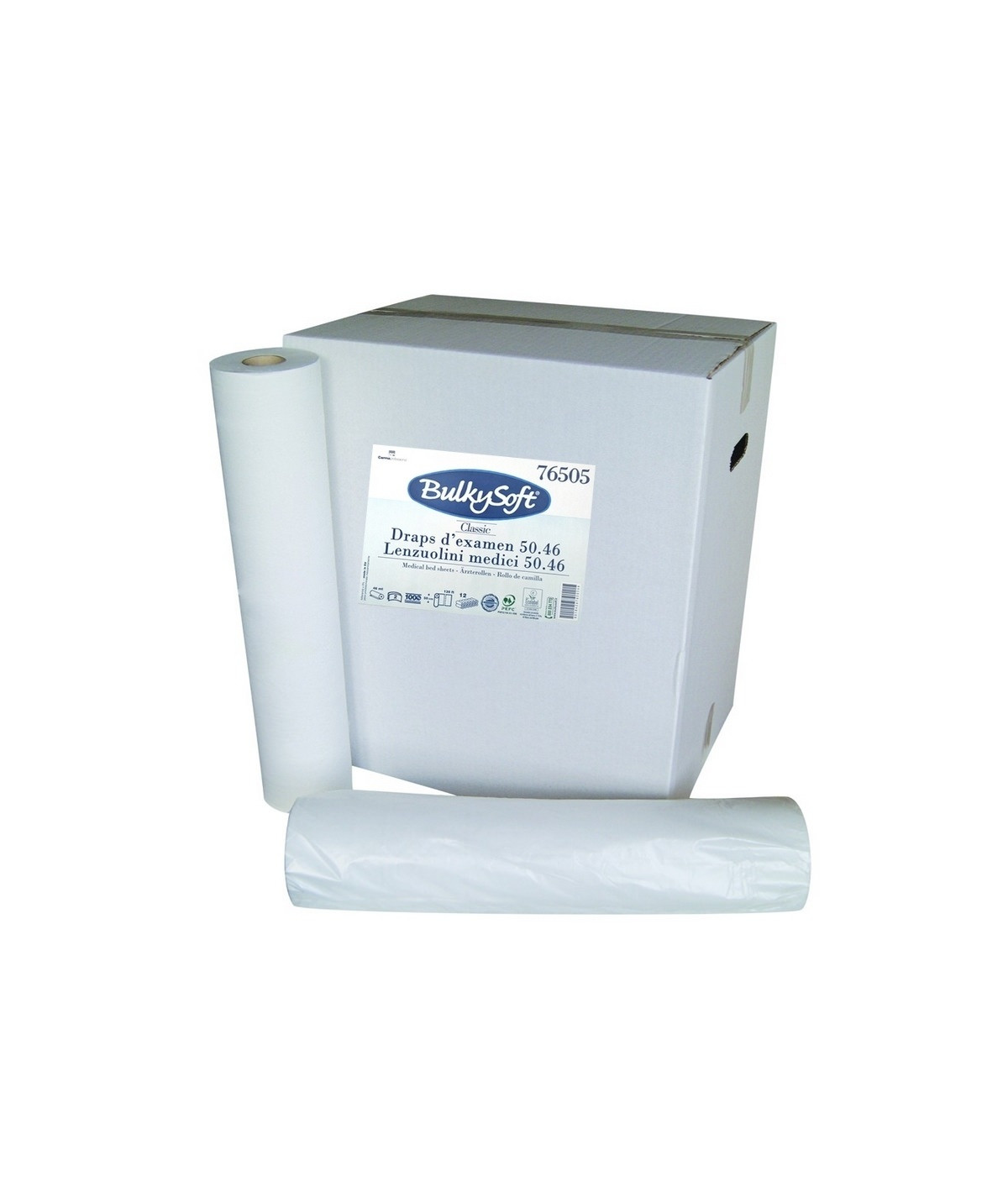 Drap d'examen lisse - BulkySoft 76505 - 135 formats 50 x 34 cm - Carton de 12 rouleaux