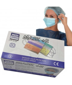Masque de chirurgie bleu - Avec élastique - Mask +R Medistock - Boite de 50