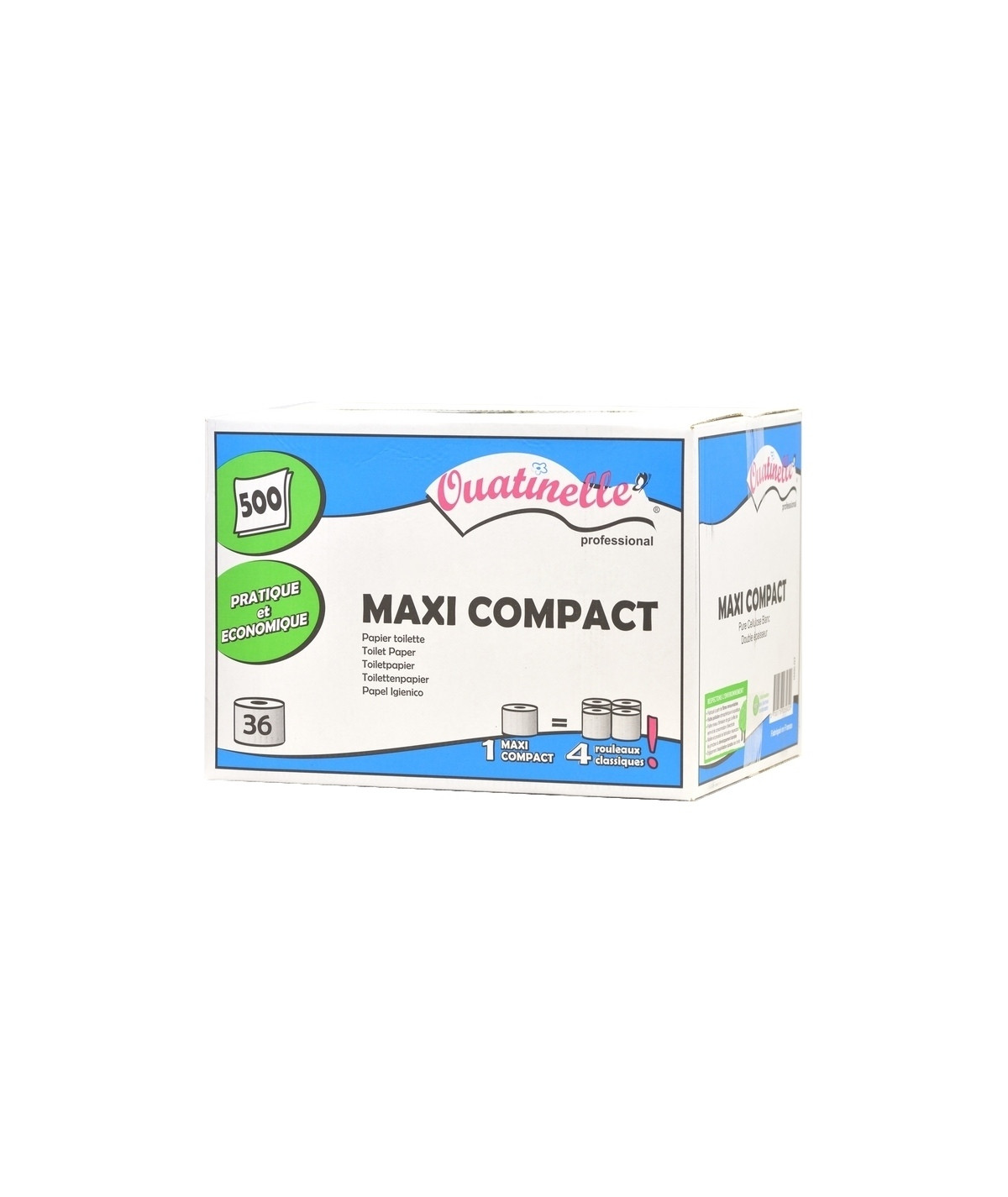 Papier toilette Ouatinelle - Maxi Compact 500 formats - Carton de 36 rouleaux