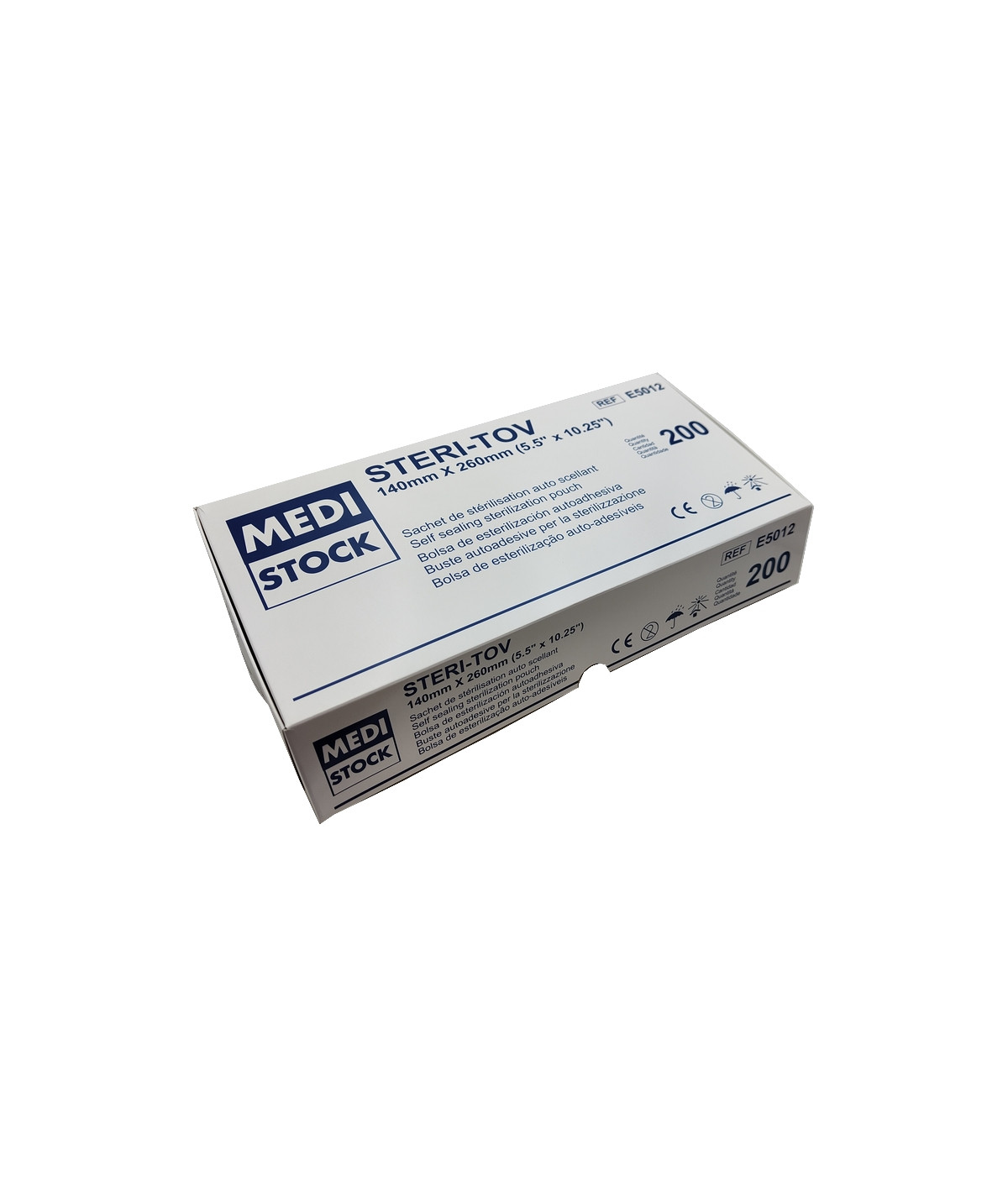 Sachet de stérilisation autocollant - Stéri Tov Medistock - 140 x 260 mm - Boite de 200
