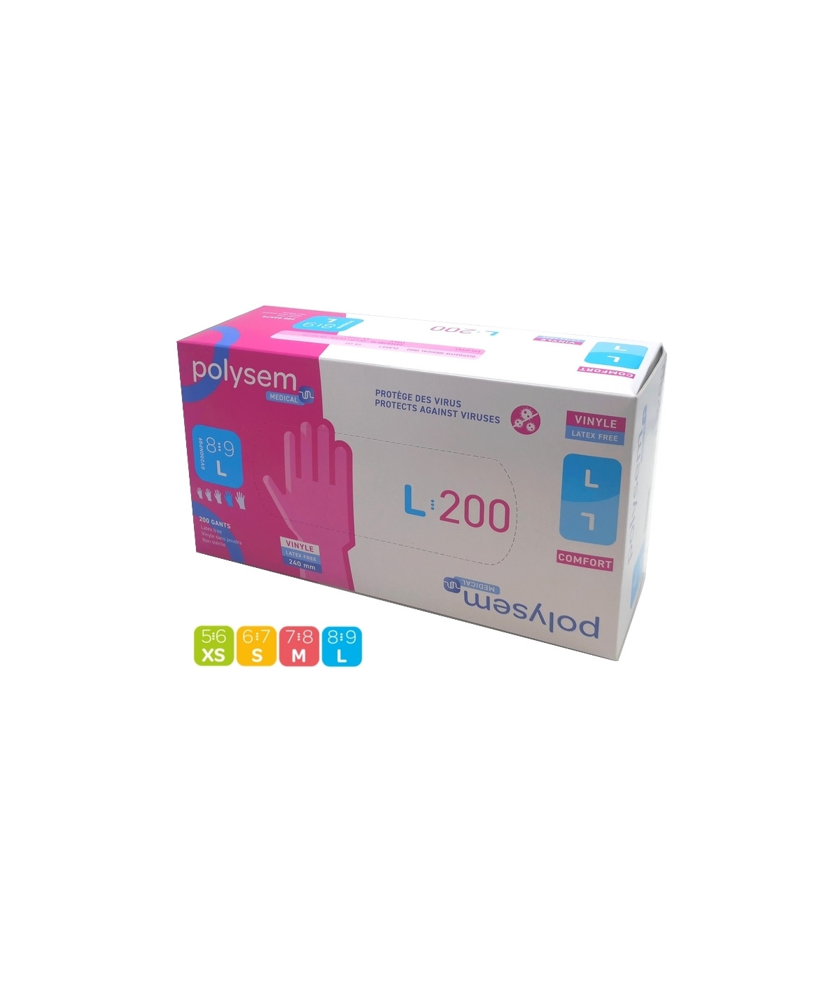 Gant d'examen Polysem Médical - Vinyle sans poudre - Boite de 200